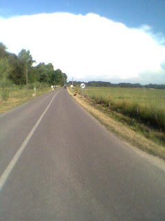 Esta foto dá-nos conta do trabalho feito pela Direcção de Estradas de Santarém que, recentemente, procedeu ao corte de muitas canas que ladeavam a EN 114-3, entre Salvaterra de Magos e os Foros de Salvaterra, melhorando a visibilidade e as condições de segurança. Mas a foto também mostra que para além da faixa de rodagem só surgem ervas e valetas, não há qualquer berma!